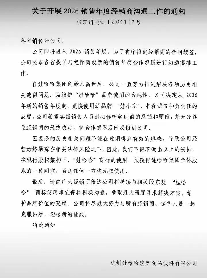其次是渠道商信任与利益重构。娃哈哈强大的“联销体”渠道网络是其成功的关键之一 。新品牌意味着经销商需重新进行市场教育,投入更多推广资源,并面对不确定的市场接受度。已有经销商从商业利益出发,对此持谨慎甚至消极态度。如何稳住渠道,并重建信任,是宗馥莉必须解决的难题。